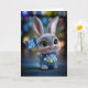 Süßes Babykaninchen in blauen Overalls "Du schaffs Karte