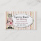 Niedliche Haustier Sitter-Geschäftskarte getan in einem blassen tan, staubigen Rosen- und weißengestreiften Hintergrund und in den Landgraphiken von gekleidet herauf die graue Katze, die eine Blume hält. Ein weißer ovaler Textbereich, in der Mitte, hat eine kakifarbige ovale Grenze und der Text ist zum Anzug Ihr Bedarf vollständig kundengerecht. Spaßweise, Ihr Geschäft zu annoncieren.