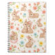 Süßes Kaninchen Blumen Frühling Muster Notizbuch. Dieses Design zeigt ein entzückendes Muster aus Babykaninchen und farbenfrohen Frühlingsblumen. Adorable Kaninchen in verschiedenen spielerischen Posen, einige kuschelnd, einige Blumen haltend, schaffen eine herzliche und wunderliche Szene. Die weiche Pastellpalette aus Rosa, Gelb, Blau und Grün auf einem hellen Hintergrund ruft ein sanftes Frühlingsgefühl hervor.