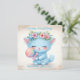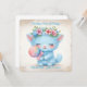 Dekorative Illustration mit einem blauen Kätzchen, das einen farbenfrohen Lutscher hält und eine Blumenkrone trägt. Sanfte Pastellfarben und sanfte Details erzeugen eine süße, spielerische und fröhliche visuelle Stimmung.