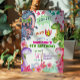 Süßes Mädchen-Dinosaurier-Einladung zum 4. Geburtstag Brülle dich ins vierte Lebensjahr