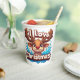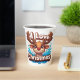 Süßes Rentier-Maskottchen mit 'Ich liebe Weihnacht Pappbecher