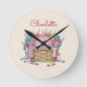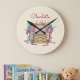 Süßes rosa flauschiges Sockenmonster-Kindermotiv Runde Wanduhr