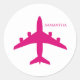 Süßes Rosa Flugzeug Mädchen Pilotin Personalisiert Runder Aufkleber
