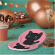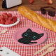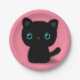 Süßes schwarzes Kätzchen auf Pastellrosa Pappteller