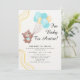 Zur Ankunft des Babys Baby Shower Einladung | Süßes Teddybär-Ballon-Thema | Neutrale Babyparty-Einladung