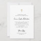 Diese schlichte und stilvolle, schwarz-weiße religiöse erste heilige Kommunion lädt zu einer kichkischen, Vintagen Schriftzeichen-Typografie und einem Imitat Goldkreuz ein. Fügen Sie ihr Foto vorne hinzu. Ein elegantes, klassisches minimalistisches Aussehen, das immer noch einzigartig und zeitgemäß und auch geschlechtsneutral ist, für einen Jungen oder ein Mädchen.