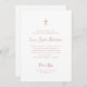 Dieses einfache und stilvolle Imitat Rose Gold aussehen religiöse First Heilige Kommunion Einladung zeigt skurrile, Vintage Stil Schrift Typografie und ein Imitat Rose Gold Kreuz. Ein elegantes, klassisches minimalistisches Look für sie, das immer noch einzigartig und zeitgemäß ist.