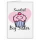 Unser SÜSSESTER Entwurf der GROSSEN SCHWESTER ist eine niedliche Weise, zu zeigen, wem die große Schwester in Ihrer Familie ist. Aufmachung eines süßen lächelnden kleinen Kuchens mit rosa Zuckergusse und der großen roten Kirsche auf die Oberseite gegen ein rosa Herz. PinkInkArt Vorlage!