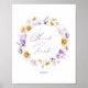 Fügen Sie Ihrer Babydusche eine charmante Touch mit diesem Süßigkeiten & Leckereien Poster hinzu! Dieses elegante Schild mit einem zarten Blumenkranz in sanften Pastelltönen aus Lavendel, Creme und Gelb ergänzt Ihren Desserttisch wunderbar. Ideal, um die Gäste zu einer köstlichen Auswahl an süßen Leckereien zu führen und gleichzeitig das Gesamtbild Ihres Festes zu verbessern.