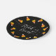 Dieser Spaß-Teller kennzeichnet ein Süßigkeitsmaismuster in Orange, gelb und schwarz und die Wörter betrügen Sie oder Leckerei.