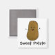 "Sweet Potato" in schwarzem Text. Über dem Text eine niedliche braune Süßkartoffel mit einem großen glücklichen Lächeln.