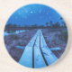 Panoramasicht auf das Bug in der Nacht mit Holzweg, kleinen Teichen und Kiefern. Wanderweg mit hölzernem Weg, der über den Sumpf gegen Vollmond und Nachthimmel mit Sternen führt.