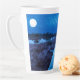 Panoramasicht auf das Bug in der Nacht mit Holzweg, kleinen Teichen und Kiefern. Wanderweg mit hölzernem Weg, der über den Sumpf führt, gegen Vollmond und Nachthimmel mit Sternen