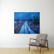 Panoramasicht auf das Bug in der Nacht mit Holzweg, kleinen Teichen und Kiefern. Wanderweg mit hölzernem Weg, der über den Sumpf führt, gegen Vollmond und Nachthimmel mit Sternen