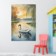 Tauchen Sie ein in die Ruhe der Natur mit unserem atemberaubenden Poster mit einem anmutigen Schwan, der auf einem friedlichen See ruhig gleitet. Der elegante Schwan mit seinen unberührten weißen Federn strahlt ein Gefühl von Anmut und Schönheit vor dem Hintergrund eines ruhigen Wassers aus, das die sanften Farben des Himmels im Morgengrauen widerspiegelt. Die sanfte Farbpalette pastellfarbener Blues und sanfter Grüntöne schaffen eine harmonische und friedliche Atmosphäre, die perfekt dazu geeignet ist, jedem Raum eine Touch der Gelassenheit zu verleihen. Lass diese bezaubernde Szene eines wunderschönen Schwans auf einem ruhigen See, der dich zu einem Ort der Ruhe und Entspannung bringt, jedes Mal, wenn du es ansiehst.
