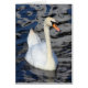 Ein Schwan auf einem See mit den abstrakten Reflektionen anderer Schwäne im Wasser um ihn herum. In Roath Park. Cardiff, Wales