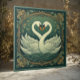 Swan Couple Art Nouveau Forest Green Wall Accent Fliese