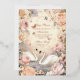 Eine romantische Babydusche mit zwei anmutigen Schwänen auf einem verträumten See, umgeben von sanften Aquarellfarben-Rose, Pfannkuchen und flatternden Schmetterlingen. Ideal, um die Mutter-to-be mit einem zeitlosen und eleganten Thema inspiriert vom Swan Lake zu feiern.