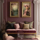 Swan Lake Romance, Portrait, Bird & Floral, Burgundy & Blush Pink, Beige Sage Green, Matching, Gallery Premium Poster, Wall Art Set.