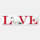 Für Schwanenliebhaber. Das Wort "LIEBE" in großen, roten Buchstaben mit dem "O" ersetzt durch das Bild eines Schwanks.