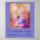 Ein charmantes, skurriles Märchenbild. Weich romantisches Foto eines weißen Schwans in lila Licht, das auf einem scheußlichen See schwimmt. Farbenfrohe Purples und Pinks schaffen eine mystische magische Stimmung. Zitat lautet: Keine Eigenschaft leuchtet heller als die eines guten Herzens.