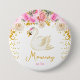 Dieser niedliche und skurrile Knopf kann mit einem Namen oder Titel personalisiert werden, wie z.B. Mama, Oma, Nichte, große Schwester etc. Das Design besticht durch eine elegante Schwan- und Rosenstöcke mit Blumenarrangements und Imitaten mit goldenen Glitzer Confetti. Der Text kombiniert handgeschriebene Skripte mit serifenlosen Schriftart für ein stilvolles und modernes Design. Das ist ideal für eine schwan-gemachte Babydusche. Grafik von Heyiamalice und SunflowerDayLove