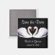 Speichern Sie die Date Magnete, mit eleganten Schwänen in Herzform auf schwarzem Hintergrund. Geben Sie Ihre Informationen in unsere einfach zu bedienende Vorlage ein.