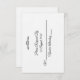 Ganz oben auf dieser R.S.V.P.-Karte befindet sich das Paar der Schwäne Trevor und Genevieve, die für ihre formellen Hochzeitseinladungen und die Einladungen zu ihrem formellen Hochzeitsempfang ausgewählt haben. Es ist eine Replik, die die elegante Kalligraphie beinhaltet.