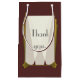 Paketgeschenke für Ihre Begleiter, Trauzeugen, Familie und alle anderen, die etwas Besonderes verdienen in diesen Geschenktaschen, perfekt für jede Hochzeit oder Veranstaltung mit einer Touch von klassischen 20er Flair. Die Vorderseite dieses roten Backsteingebäudes ist mit einem im Art-Déco-Stil inspirierten Goldrahmen und stilisierten Scheinwerfern dekoriert, die ein schlichtes "Danke" hervorheben. Die Rückseite hat einen passenden Rahmen und Spotlights mit Beispieltext, den Sie an die Details Ihres speziellen Tages anpassen können. Verpassen Sie nicht, die anderen Produkte des Swanky Art Déco in Red Set auszuprobieren, um einen wirklich koordinierten Look für Ihre Veranstaltung zu schaffen.