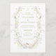 The invitation showcases a harmonious blend of soft pastel hues, including gentle pinks, blues, and greens. This soothing color scheme evokes tranquility and sophistication, beautifully complementing the floral and greenery elements.