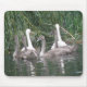 Dieses Mousepad zeigt ein wunderschönes Foto von erwachsenen Schwänen und ihren 4 Zygnetten, die in der Ferne entlang eines friedlichen Flusses schwimmen.