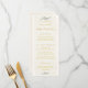 Individuell gestaltbare Speisekarte für Hochzeiten und besondere Anlässe mit einer einfachen Grünanlage mit formellem und extravagantem handgeschriebenem Schriftart aus goldfarbenem Kalligraphie.