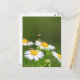 Eine Schweißbiene und ein paar Fliegen arbeiten, um Blume im Sommer zu bestäuben. Benutzen Sie diese fotografische Postkarte, um Freunden oder Familienmitgliedern eine kurze Nachricht zu schicken, in der gelassen wird, wie das Leben für Sie funktioniert.