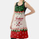 Really cute sweater pattern Christmas apron for him or her. Features a forest green, rich red, and off white sweater textured pattern with "Jackson - Head Chef est. 1980" text and crossed spoon and whisk utensil.