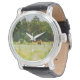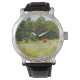 Uhr, Klassische Damenuhr mit schwarzen Lederarmband