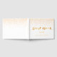 Ein Gästebuch für eine glamouröse 16. Geburtstagsfeier. Ein eleganter weißer Hintergrund mit goldenem Konfetti-Sprinkle. Der Text: Das Gästebuch ist mit trendigen Imitaten mit goldenen Buchstaben geschrieben. Der Name wird mit einem handgeschriebenen Stilskript geschrieben. Vorlage für Ihren Text auf der Wirbelsäule.