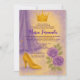 Mit dieser glamourösen Quinceañera-Einladung mit goldener Krone, glänzender High Ferse und eleganten lila Rose fühlen Sie sich wie Königin. Die goldfarbene und violette Farbpalette Set die Bühne für eine feierliche Festlichkeit voller Charme und Anmut. Eine fließende Silhouette und glitzernde Akzente verleihen diesem die perfekte Prinzessin-Touch für eine süße 15, die für eine Königin geeignet ist. Personalisieren Sie die Formulierung, um Ihren besonderen Tag widerzuspiegeln und senden Sie den Gästen eine Vorschau auf den Zauber zu kommen.