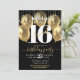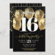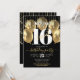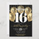 Sweet 16 Birthday Girly Glam Gold Ballon auf Black Einladung