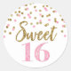 Sweet 16 Birthday Light Pink Gold Confetti Runder Aufkleber