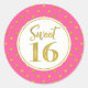 Sweet 16 Birthday Pink White Gold Dots Runder Aufkleber