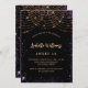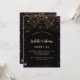 Für einen eleganten Sweet 16, 16. Geburtstag. Ein stilvoller schwarzer Hintergrund. Dekoriert mit lila Imitaten goldener Glitzer Staub und goldene Lichtsaiten. Personalisieren und fügen Sie Namen, Alter und Party Details hinzu. Der Name wird mit einem handgeschriebenen Stilskript geschrieben