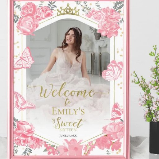 Sweet 16 Einladung Schmetterling Pink Kleid Blüte
