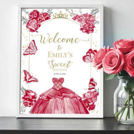Sweet 16 Einladung Schmetterling Rotes Kleid Blüte