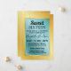 Elegant Sweet 16 Einladung mit smaragdfarbenen und goldenen Fußnoten modifizierbar