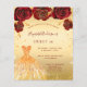 Bitte beachten Sie, dass diese Einladung auf Flyer Papier und sehr dünn ist. Umschläge sind nicht enthalten. Für dickere Einladungen (gleiche Gestaltung) besuchen Sie bitte unseren Shop. Eine moderne, stilvolle und glamouröse Einladung zu einer Sweet 16. Geburtstagsfeier. Ein Imitat goldener Hintergrund mit Imitaten goldenen Glitzer Staub, ein Kleid und rote Rosen, Blumensträuße. Der Name ist mit einem modernen handgeschriebenen Stilskript geschrieben. Personalisieren Sie Ihre Party-Daten und fügen Sie sie hinzu.