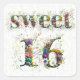 Sweet 16 Happy Birthday Wildblumen Text Quadratischer Aufkleber