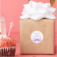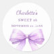 A white background color. Decorated with a large lavender colored bow. Personalize and add the name and date.