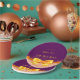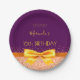 Eine Papiertüte für eine gmädchenhafte und glamouröse 16. Geburtstagsfeier. Ein eleganter weiblicher lila Hintergrund mit Imitaten Rose Gold Konfetti. Der Text: Der Name wird mit einem goldenen, modernen Handschrift geschrieben. Vorlage für Namen, Alter 16 und Datum.