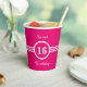 Elegant süß 16 mit weißen Streifen auf rosa Birthday Cups. Text kann für andere Altersgruppen, Geburtstage, Firmenmeetings, Business, Party und mehr personalisiert werden!